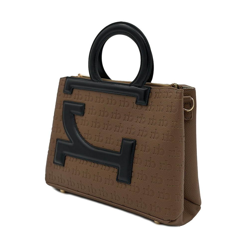 L’iconico logo RB si reinventa diventando un elegante manico scultoreo, fulcro di un design sofisticato. Una borsa pensata per essere la compagna essenziale e discreta della donna contemporanea.