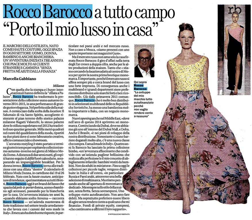 Rocco Barocco a tutto campo. Porto il mio lusso in casa.
